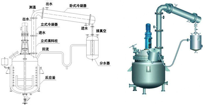 1.反應鍋  2.豎式分餾柱  3.豎式冷凝器  4.臥式冷凝器